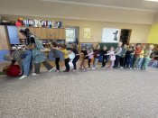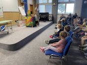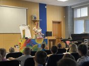 V úterý 6.5.2025 k nám přijel mobilní zážitkový stan. Děti shlédly pohádku Putování s krtečkem ve vesmíru, dále se v poutavé projekci o kosmonautech, vesmírných projektech, planetách a vesmírných tělesech dověděly nové zajímavosti a fakta. Na závěr si zahrály pohybové hry na téma Slunce, planety a měsíce. Program byl pro všechny děti velice zajímavý a přínosný a všechny děti byly nadšené.
