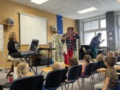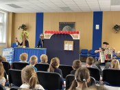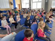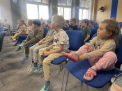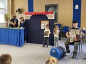 Paní Hanáčková z Místní knihovny pochválila děti za jejich čtenářské deníčky a poděkovala našim "čtecím babičkám a dědečkům".