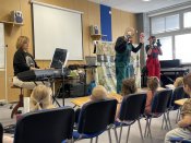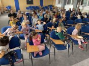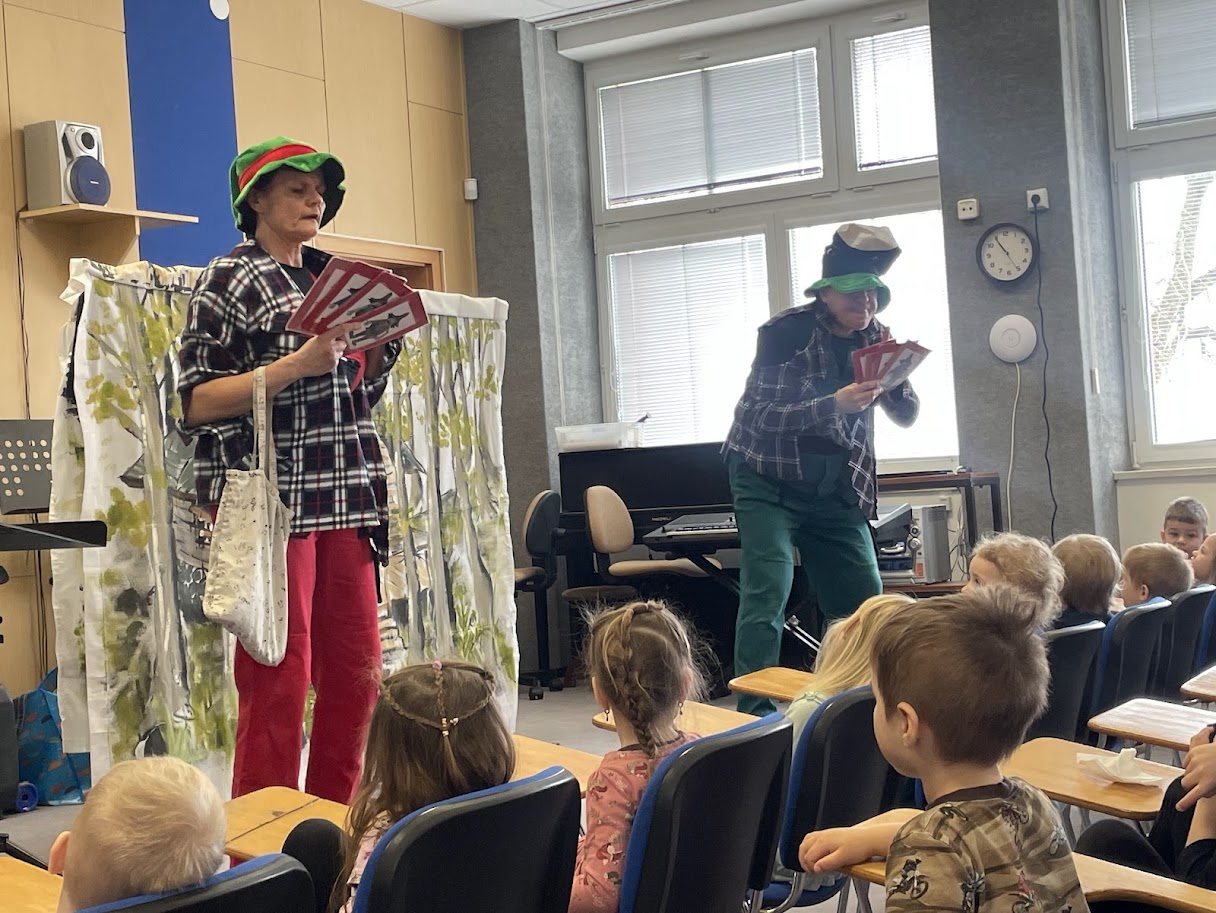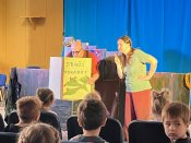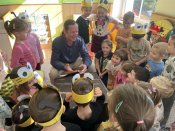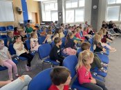 V pondělí nás navštívila paní ředitelka z Městské knihovny v Kyjově. Pochválila děti za jejich čtenářské deníčky a poděkovala našim "čtecím babičkám a dědečkovi" a paní Hanáčkové z knihovny v Hovoranech, která nám pohádky do deníčků chystala. Děti se pochlubily svými výtvory, které budou brzy zdobit chodbu knihovny. Nakonec byly děti pasovány na čtenáře. Tento projekt se dětem moc líbil a chtěli bychom v něm pokračovat i příští školní rok.