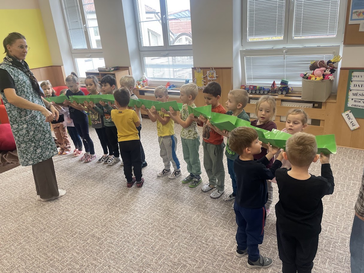 Pak už na děti čekala podzimní stezka po okolí MŠ, na které plnily zábavné aktivity.